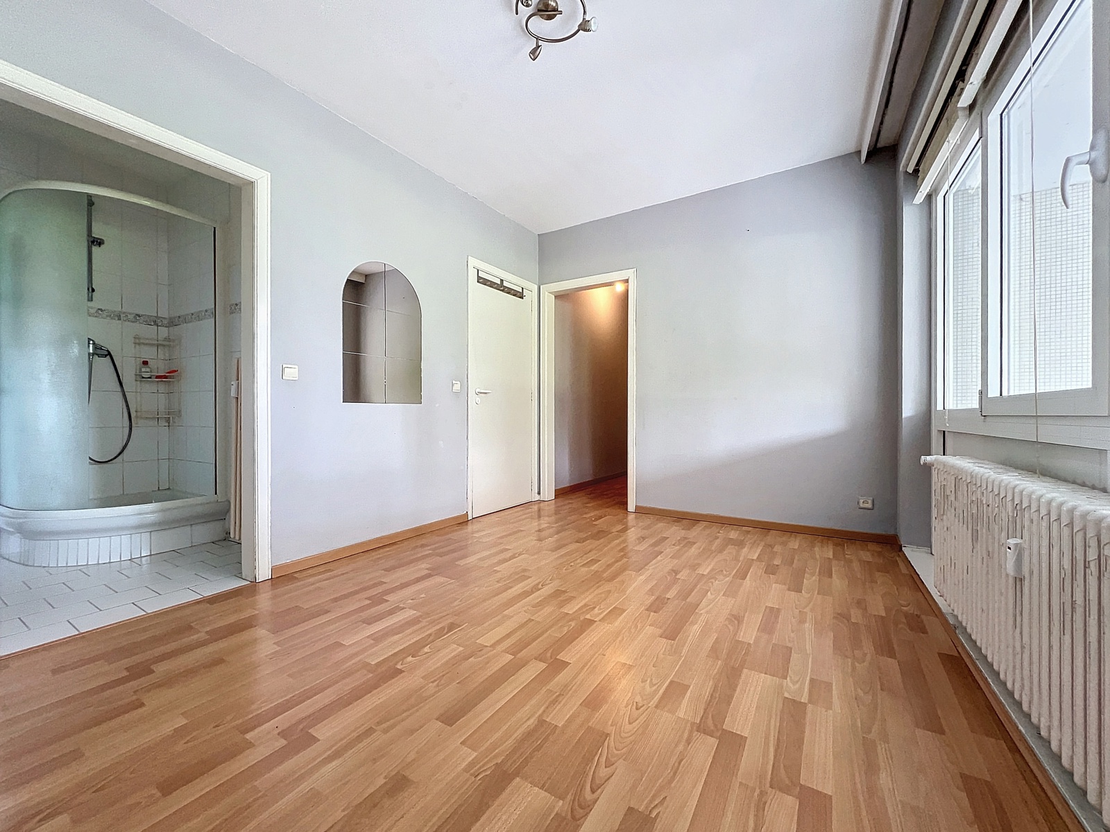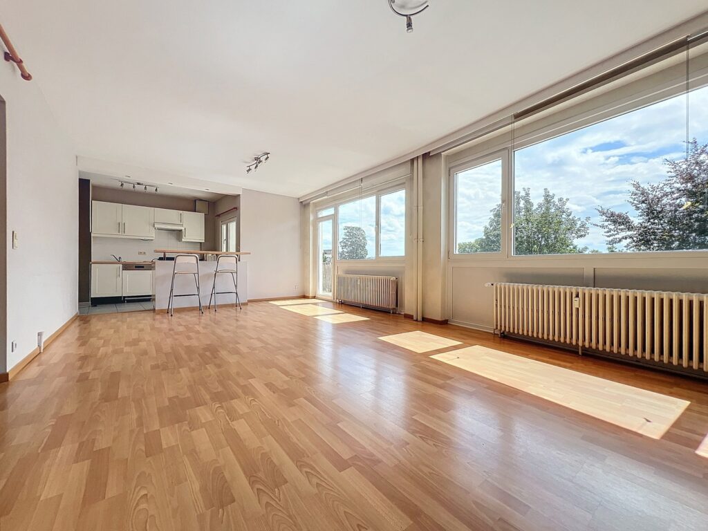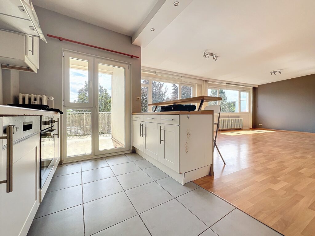 Welcome to DLDproperties! If you're looking for a bright flat with a south-facing terrace (renovated in 2010) comprising 1 separate bedroom (+/-14m2) with dressing room, we've got just what you're looking for! Located in the ‘La Magnanerie’ condominium on the rear ground floor with views over its private park, its large sunny terrace offers exceptional light! The flat comprises: entrance hall leading to a 33m2 living/dining room with open-plan fitted kitchen (+ washing machine area) with access to the covered terrace, a night hall with a separate toilet and cupboard, the front of the building, a 14m2 bedroom with a lovely dressing area, a shower room and a large cellar. Floating parquet flooring throughout, tiled floors in the kitchen and entrance hall. Double-glazed insulation, collective gas heating with co-generation. EPC is C.provisions of charges amount to + / - 200 € / month (common, water ch-fr, heating). 3-year lease.free parking.for more information or to arrange a viewing, contact us on +32 2 315.16.57 or [email protected].